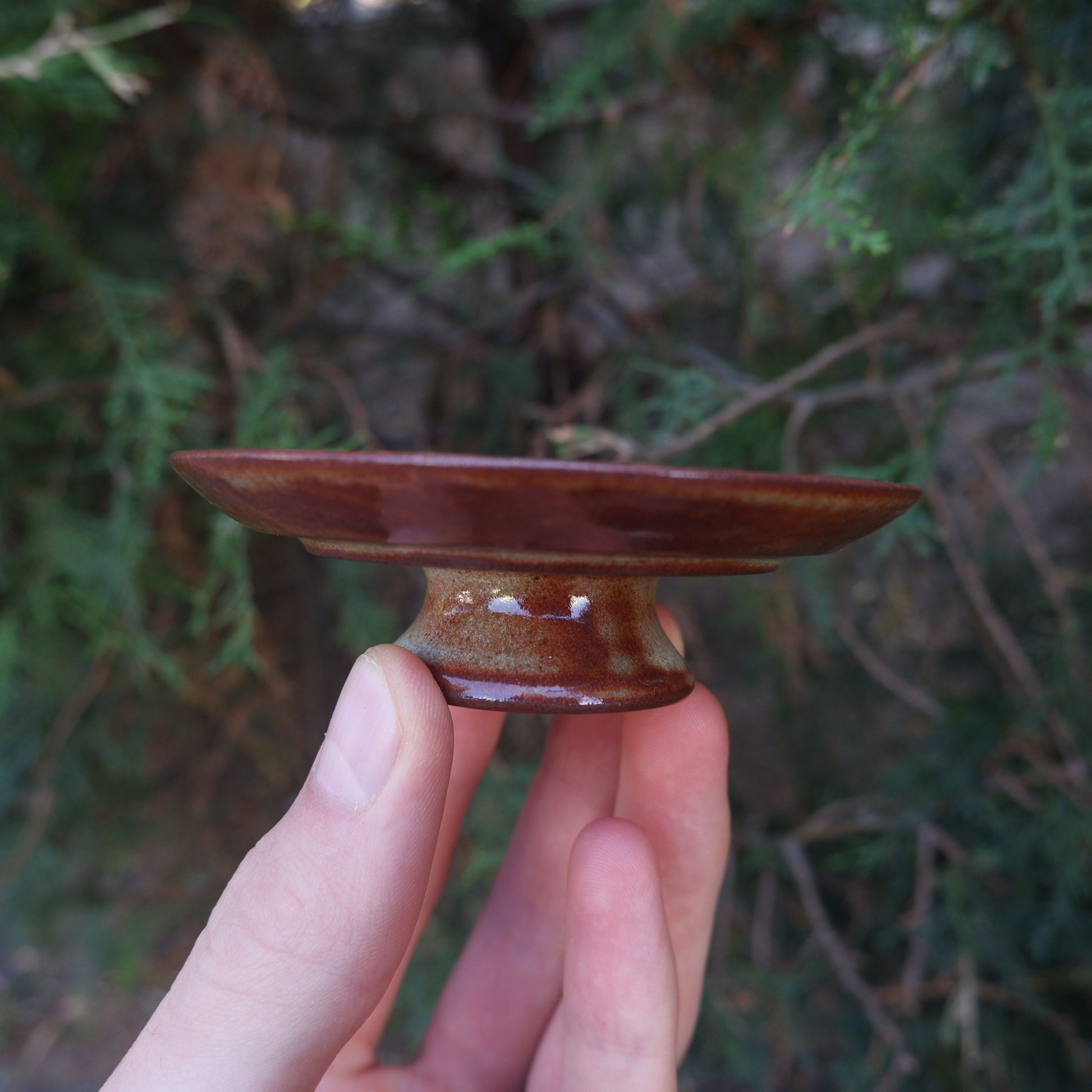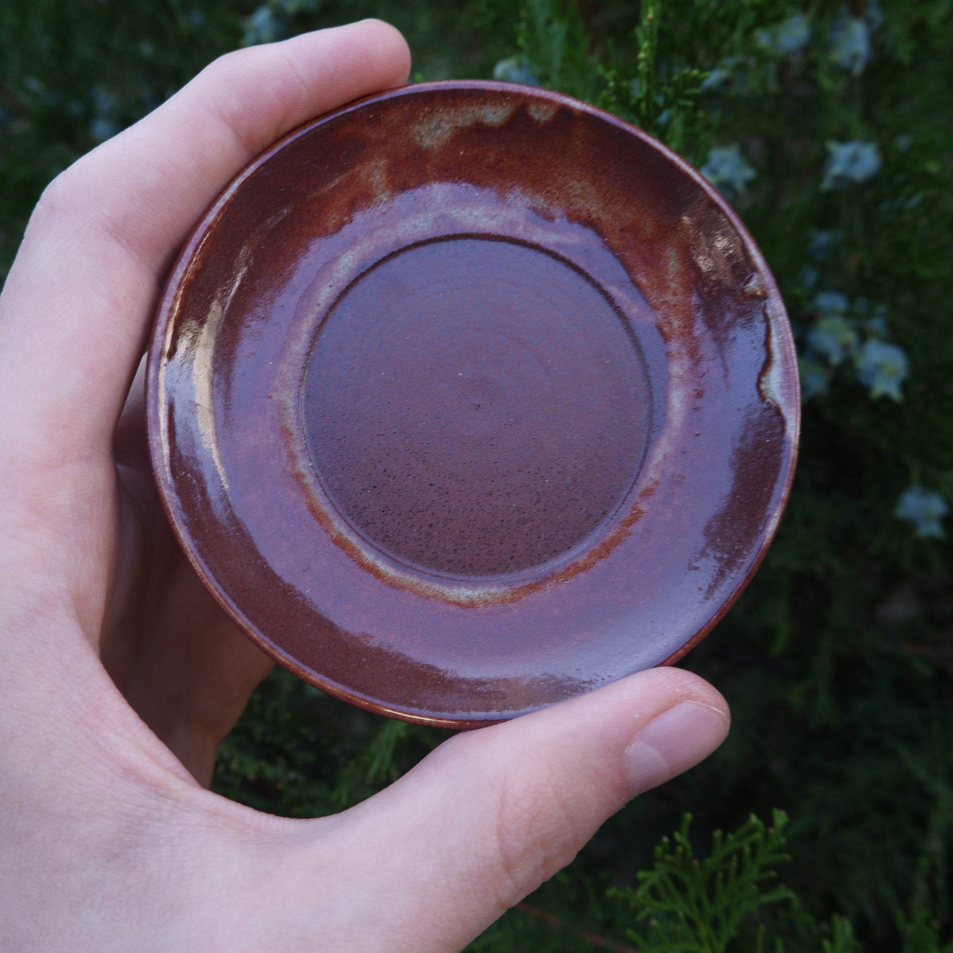 Уважна графічна форма доповнює простір і реальність навколо. Виконана з червоної високотемпературної глини повність вкритої традиційною поливою шіно, блюдце може виконувати і свою функцію і функцію кришки.